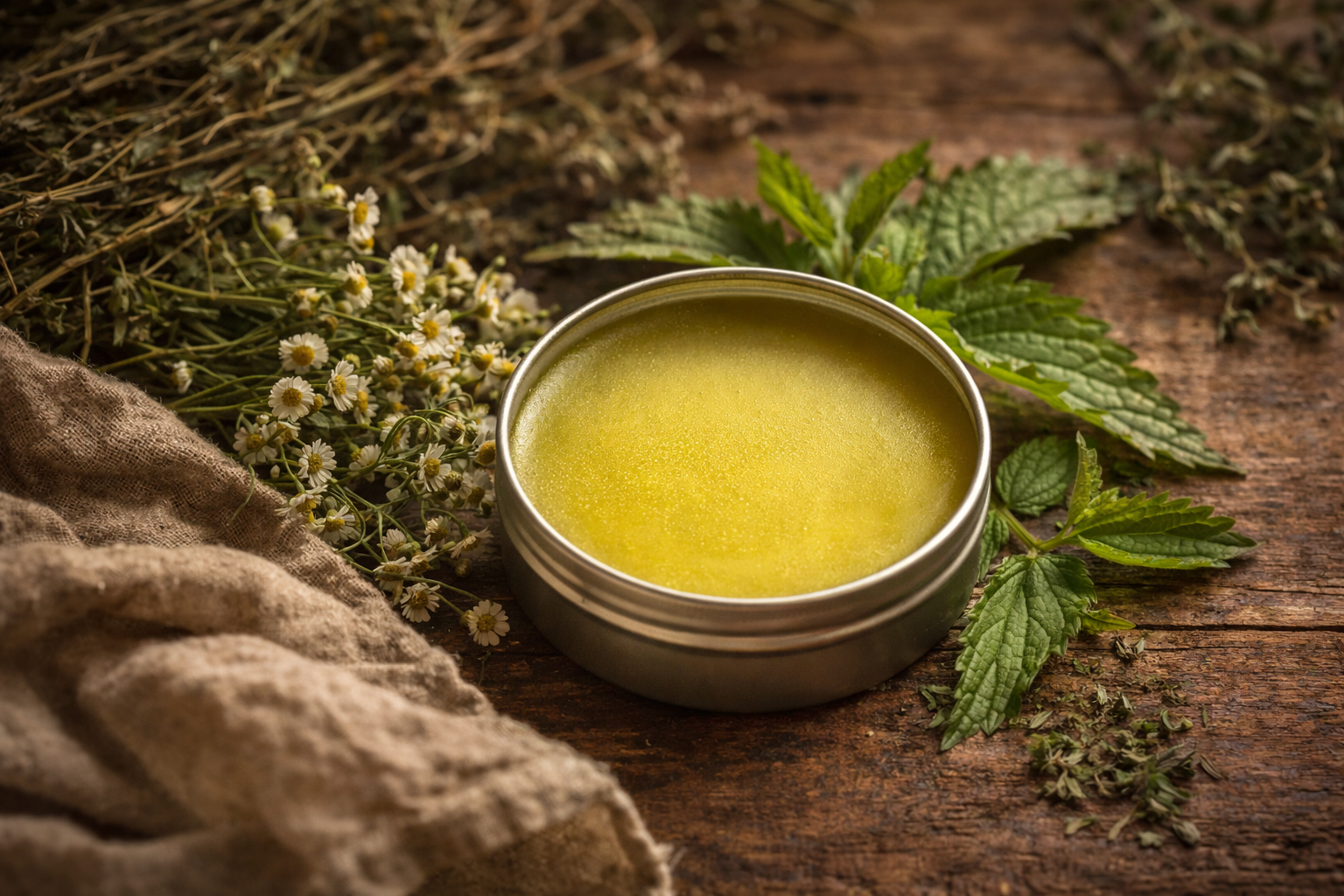 This often includes infused plants like chamomile, calendula, or lavender, along with nourishing oils, beeswax, and natural extracts.